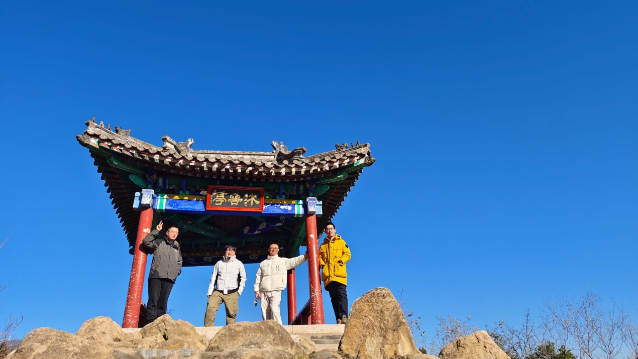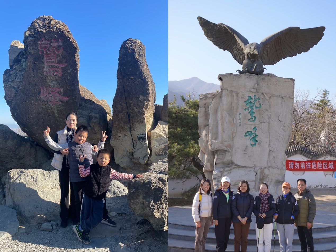 经过1个多小时的攀登,老师们到达了鹫峰山顶。头顶着湛蓝的天空,吹拂着清凉的微风,俯瞰着整个京城,山顶无限好风光。