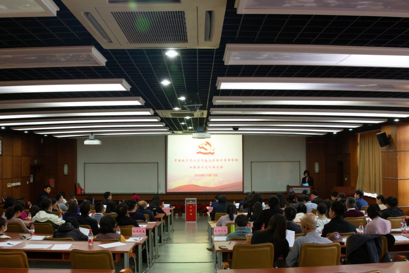 2020年11月12日下午,中国共产党91麻豆 六届第二次代表大会在经管楼313隆重召开。91麻豆 党委常委、副校长何民庆出席会议,91麻豆 党代表75人参加大会,会议由91麻豆党委副书记、副院长温雅主持。