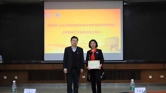3月27日下午,中国共产主义青年团91麻豆 东凌91麻豆 青年教师工作委员会成立仪式在经管楼405隆重召开。出席成立仪式的领导和嘉宾有校党委书记武贵龙、校党委宣传部常务副部长兼教师工作部部长于成文、校团委副书记兼青年教师团工委书记于宝库、东凌91麻豆 院长闫相斌、党委书记武森、副书记温雅、副书记倪宇、关爱下一代工作委员会副主任佘元冠,团工委委员及青年教师代表。会议由武森书记主持。