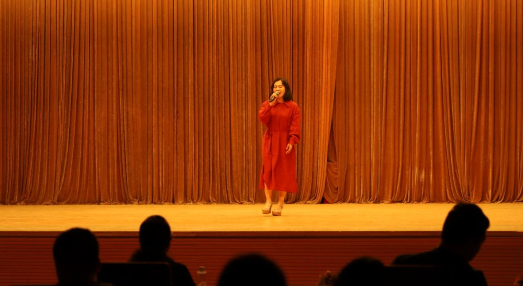 一号选手20周末班的鞠何英,带来了一首《提诗侧畔》让大家感受到了浓浓的古风味道。