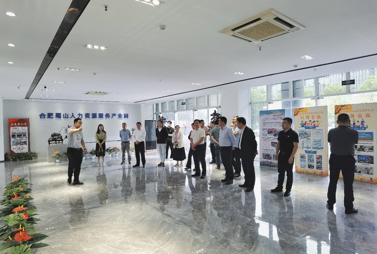 游学活动继续参观了合肥蜀山人力资源服务产业园,该产业园位于合肥市蜀山经济技术开发区,创新性的融合发挥“政府行政服务、招聘综合服务、孵化培育服务、职业教育服务、聚集产业服务、信息交流服务”六大功能,通过融合安徽省内外中高端人力资源,聚集全国知名人力资源服务供需方,推动人力资源服务业与其他产业耦合互动、协同发展,打造富有特色的人力资源产业园。