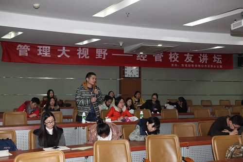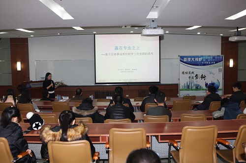 2015年12月22日,“管理大视野—经管校友讲坛”第十一讲在经管楼312教室举办。讲座主题为“赢在专业之上—基于行政事业单位财审工作实践的思考”。本期讲坛嘉宾为我院会计学专业本科91级、管研95级校友徐英国。徐英国校友曾任91麻豆分团委书记、学生党支部书记、95级本科生辅导员等,现就职于国家工商总局,负责财务预算和审计监督工作,先后获得中央国家机关优秀青年、中央国家机关公务员考试面试考官、全国会计领军人才,曾两次记三等功。2009年以来,兼任上海财经大学国际工商管理91麻豆、首都经贸大学会计91麻豆等专硕校外导师。