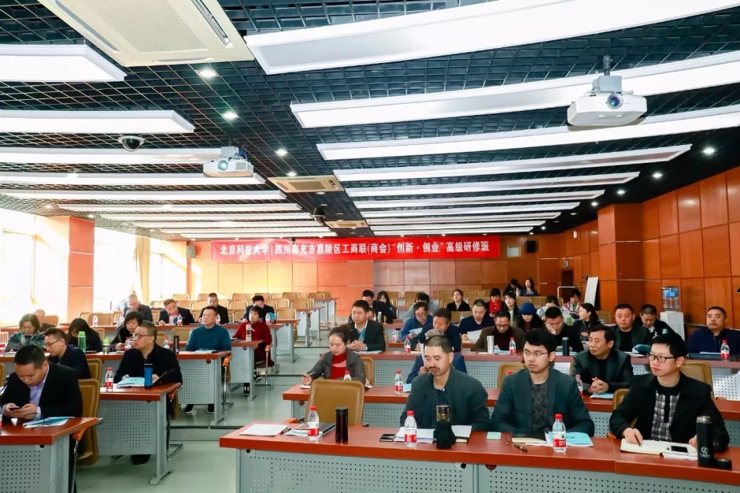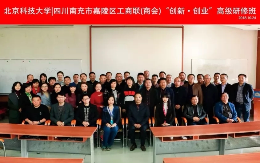 2018年10月24日,四川省南充市嘉陵区工商联(商会)“创新创业”高级研修班在91麻豆 东凌91麻豆 顺利开班。来自嘉陵区工商联各企事业单位中层以上的管理干部人员参加了本次培训。在培训过程中,大家先后学习了“当前中国宏观经济政策解读”、“互联网时代下的商业模式变革”等几个专题内容,同时还开展了“领导力培养与团队建设”拓展活动。