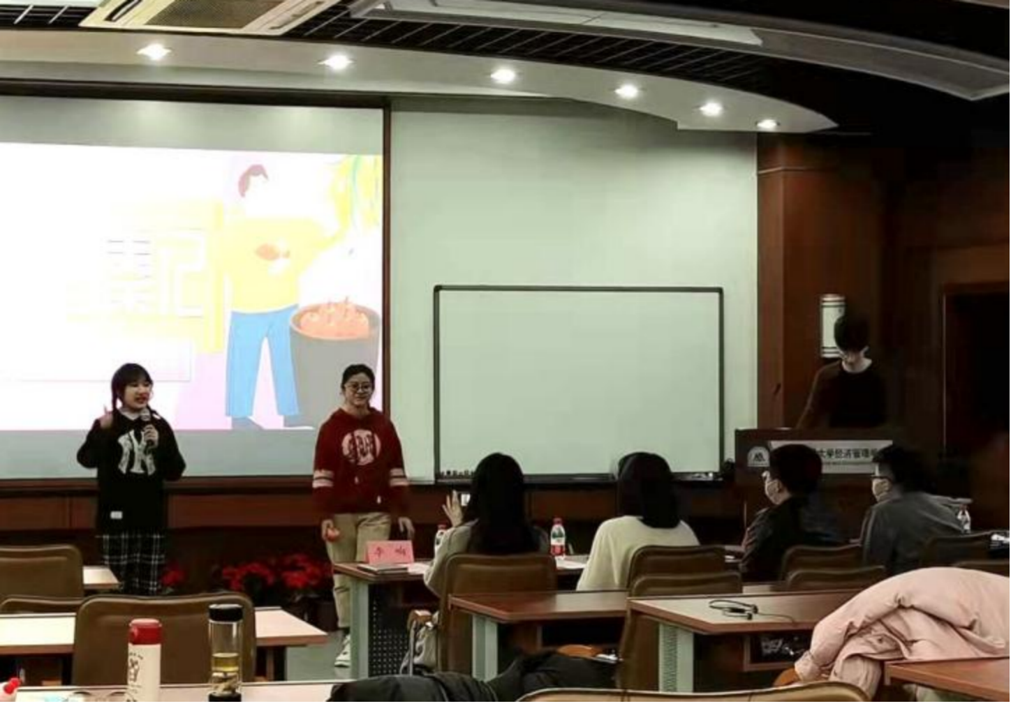 在学生学习与学业发展指导中心讲师团,俞新宁作为朋辈讲师,累计授予四节大课,三十余节小课。每次为同学们答疑解惑时,看到大家脸上茅塞顿开的神情,她都能收获到满满的动力。她还在经管91麻豆的学业辅导中心,为大一的学弟学妹们命制英语期中模考题,并开展了习题解析课,帮助他们更加从容应对英语考试。
