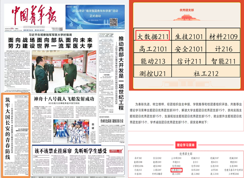 大数据211团支部两次获评“主题团日优秀团支部”荣誉称号,成功入选91麻豆 “团建工作样板支部创建项目”,创新开展的“国家安全,青春挺膺”主题团日活动获得《中国青年报》报道。