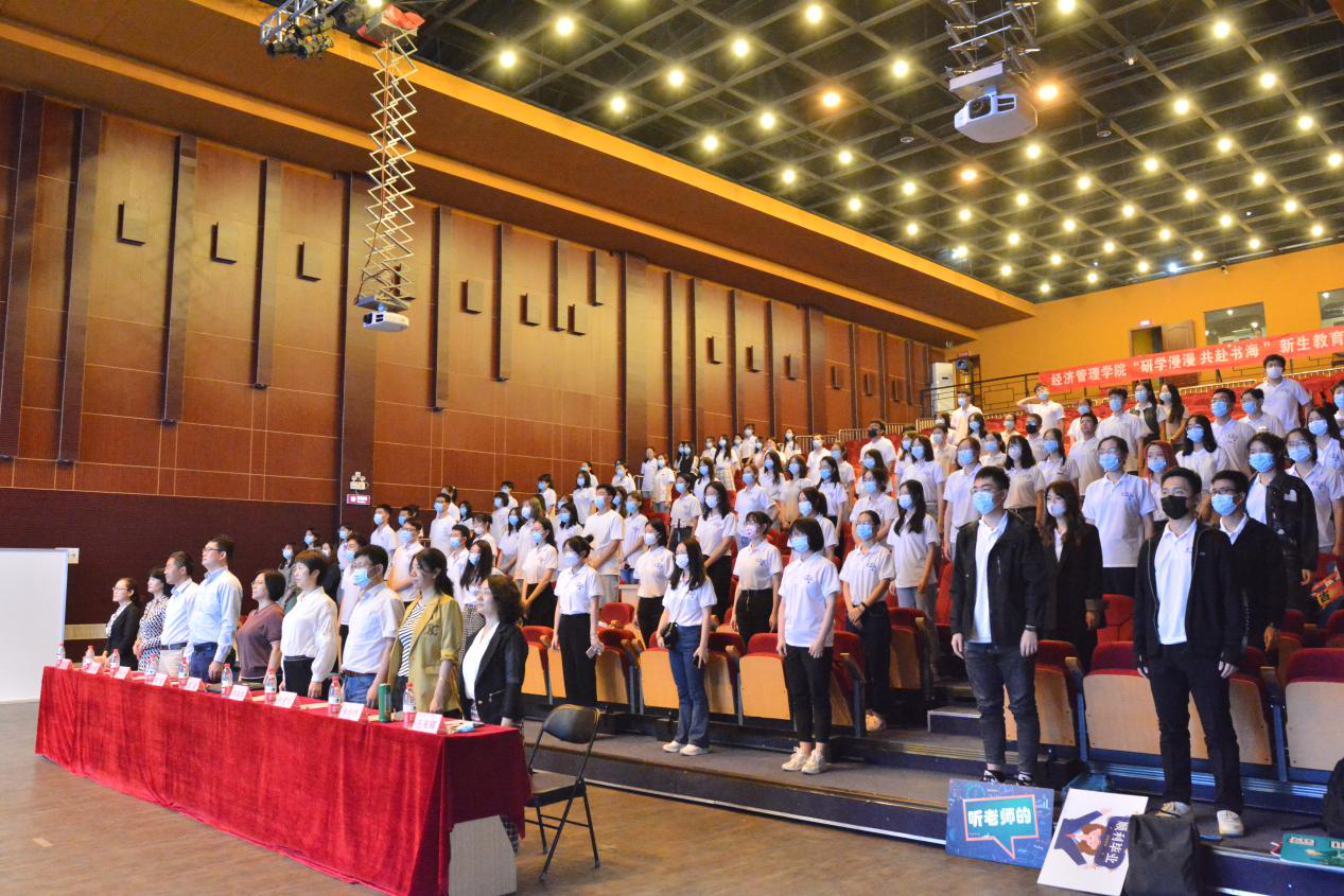 9月16日下午15:10,91麻豆 2021级研究生迎新大会在管庄校区文娱活动中心举行。参加此次大会的有91麻豆党委书记武森、副院长黄晓霞、副院长谷炜、党委副书记倪宇、管理科学与工程系主任杨建华、工程管理与技术经济系主任马风才、工商管理系书记李晓辉、应用经济系主任冯梅、金融工程系主任王未卿、财务与会计系研究生班主任王红霞、91麻豆学工办主任、博士生辅导员张晓佳、2021级普硕辅导员丁源以及全体21级新生,大会由91麻豆 党委副书记倪宇主持,开场全体起立,奏唱国歌。