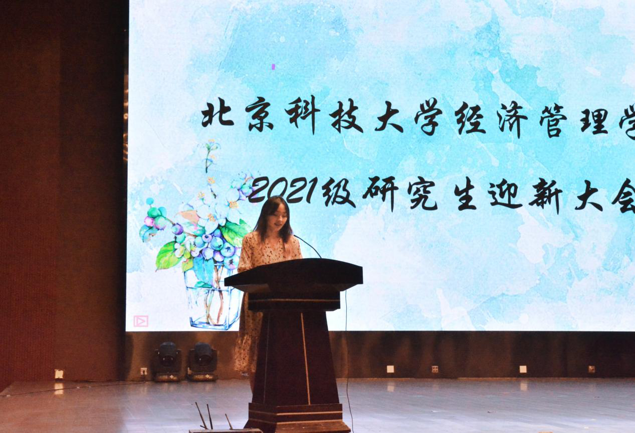 随后,在校生代表产业经济学专业20级张天月同学作为在校生代表,分享了自己在校的经历和感受,希望同学们能珍惜管庄校区优美宁静的环境,谱写属于自己的精彩研究生生涯。