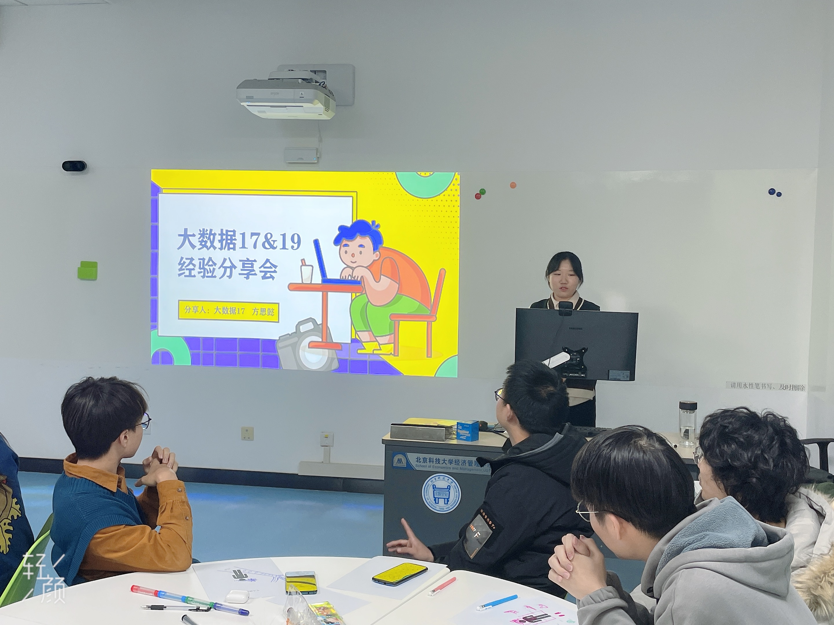 当大家开始反思自己现在的状态,思考起未来时,来自大四已经成功保研北京理工大学的方思懿学姐在第四个环节“对话大二”中向我们展示了未来我们最好的模样。学姐根据我们之前的提问,解答了大家刚升入大二时面临的最大的疑惑,向我们展示了我们专业课程的前景以及未来的发展方向。学姐给我们讲述我们未来应该如何努力,如何才能在“大数据”专业实现自己的价值,收获最好的自己。学姐干货满满的展示以及真挚的语言吸引了所有人的注意,带我们这些刚刚踏入这一领域的迷茫学子一点点地拨开了未来的迷雾,使我们对于未来更加清晰,更加有奋斗的动力。