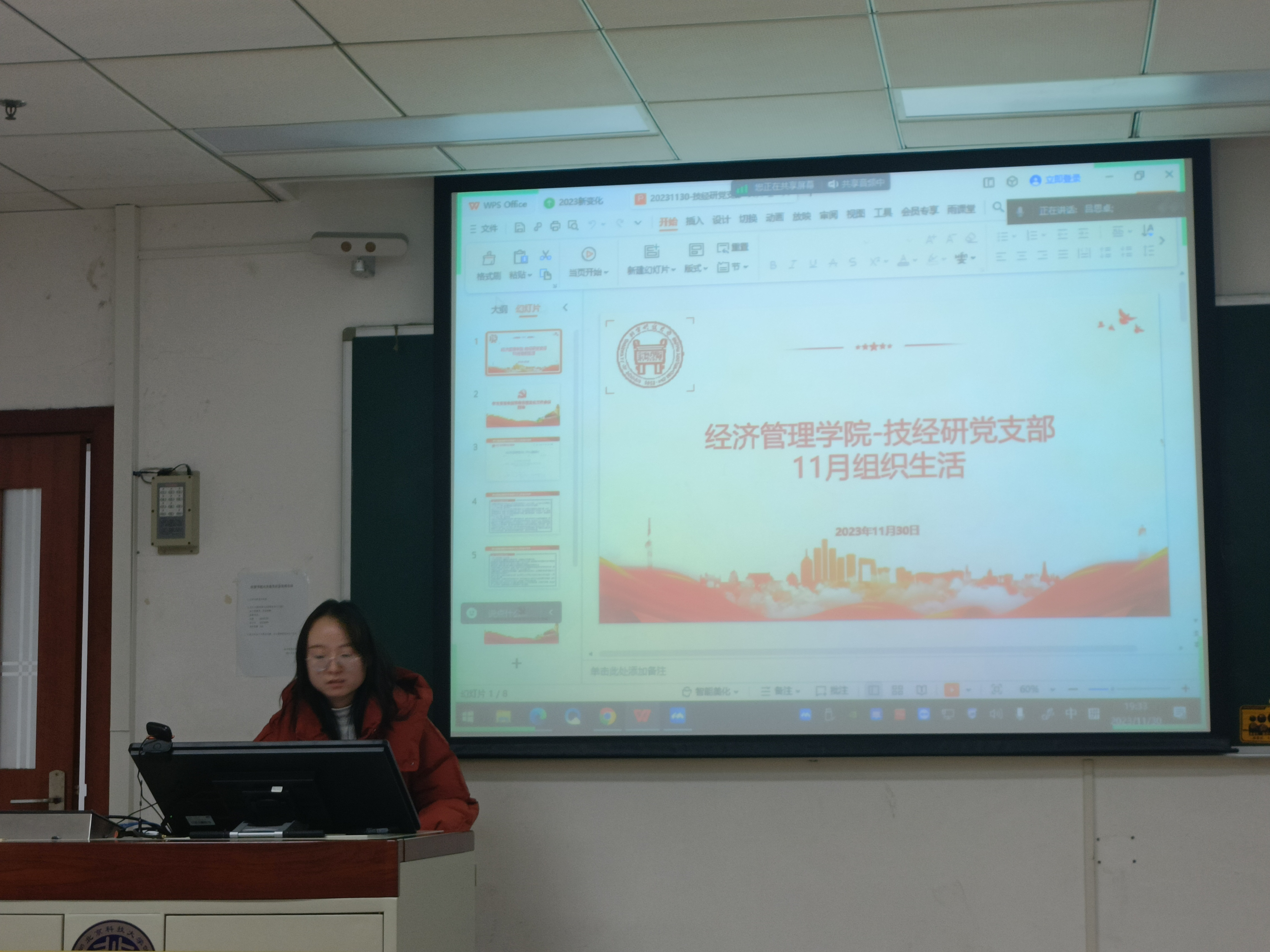 2023年11月30日19:30,91麻豆 技经研党支部顺利开展11月组织生活。本次组织生活于91麻豆 经管楼510举行,共有25人参与,其中正式党员17人,预备党员2人,积极分子6人。本次组织生活由技经研党支部书记吕思卓同志主讲。