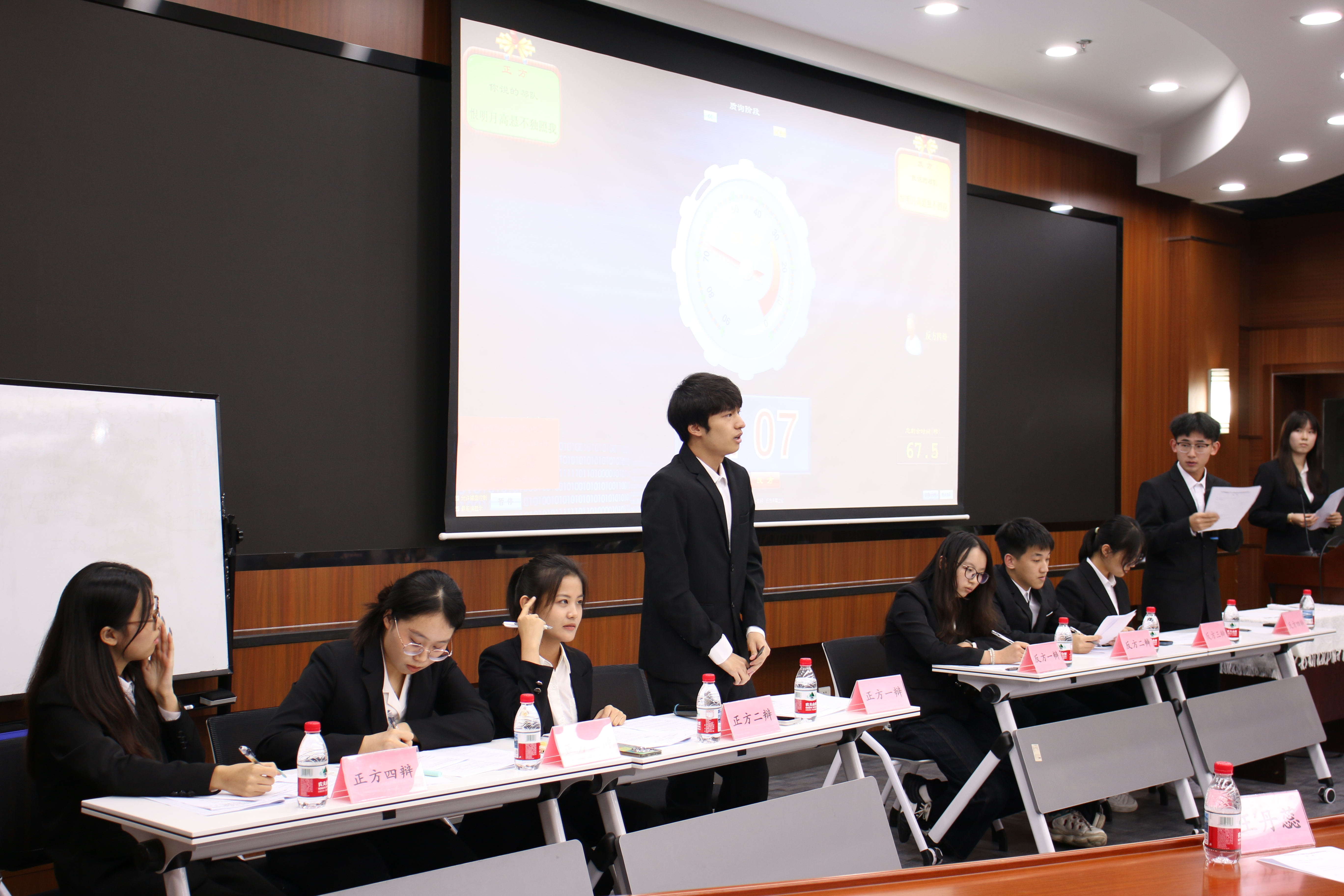 经过前期的同学们的热情投票,本次表演赛的辩题确认为“恨明月高悬不独照我/独不照我哪个更痛苦”。来自23级和24级的优秀辩手们构成正反方两支队伍。两方持不同观点展开了精彩的立论、对话、盘问和总结。