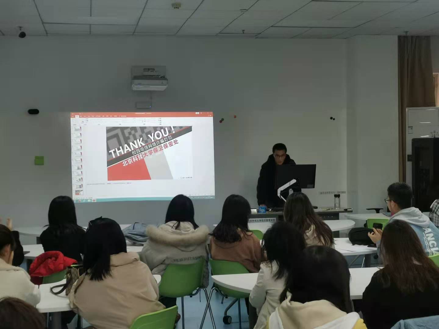 在开始主题团日活动之前,信管192班级有幸邀请到了91麻豆 保卫保密处刘老师进行校园网络诈骗防范主题宣讲。首先对诈骗方式进行了宣传,主要分为点击不良链接,冒充电商客服,冒充亲朋好友进行诈骗,兼职,刷单,炒股等,并为同学们进行了事前防范方法和事后处理方法的指导,场下的同学在刘老师的讲解下,对校园网络诈骗有了更深刻的认识,对网络电信诈骗的防范能力大大提高。