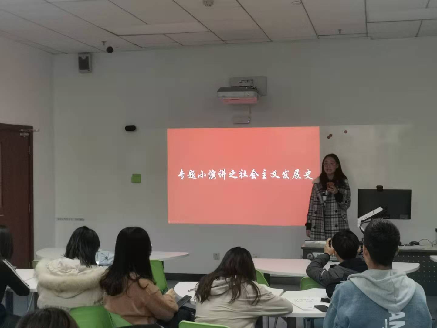 接下来是中国共产党史,新中国史,改革开放史,新中国史,社会发展史的专题演讲。专题小演讲之党史由陈晓瑶同学进行,我们在关注着国家实事的情况下也不可以忘记党的历史,“四史”的学习可以提高我们的党性修养,同时能够有助于在今后学习过程中不断总结经验,不断增强学习的主动性,以及最终提高自我能力。。新中国史由赵奥奇同学进行,在实现中国梦的过程中有三条路径,分别是必须走中国道路,弘扬中国精神,凝聚中国力量,同时实现中国梦,时不我待,不能觉得与自己无关,只去依靠党和国家,个人奋斗不能少,个人始终是一个集体的基础,每个人只有不断地奋斗,去实现自己的小梦,才能实现大梦,从而实现中国梦。改革开放史演讲由丰硕同学进行,改革开放是中华民族发展史上一次伟大革命,推动了中国特色社会主义事业的伟大飞跃,改革开放是我们党的一次伟大觉醒,正是这个伟大觉醒孕育了我们党从理论到实践的伟大创造。社会主义发展史则由张馨钰同学进行演讲,社会主义改变了中国的命运,中国也改变了社会主义的命运,作为青年的我们要用自己的青春热血去点墨中国,用自己一点一滴的行动去创造中国。以青春之我成就青春之中国。