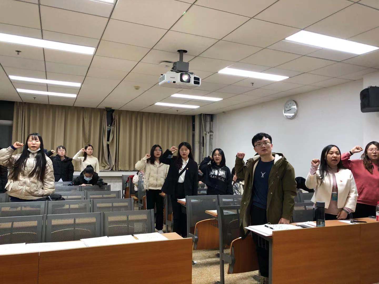 接下来,在支部书记童梦露同志带领下,全体党员起立,宣读入党誓词。