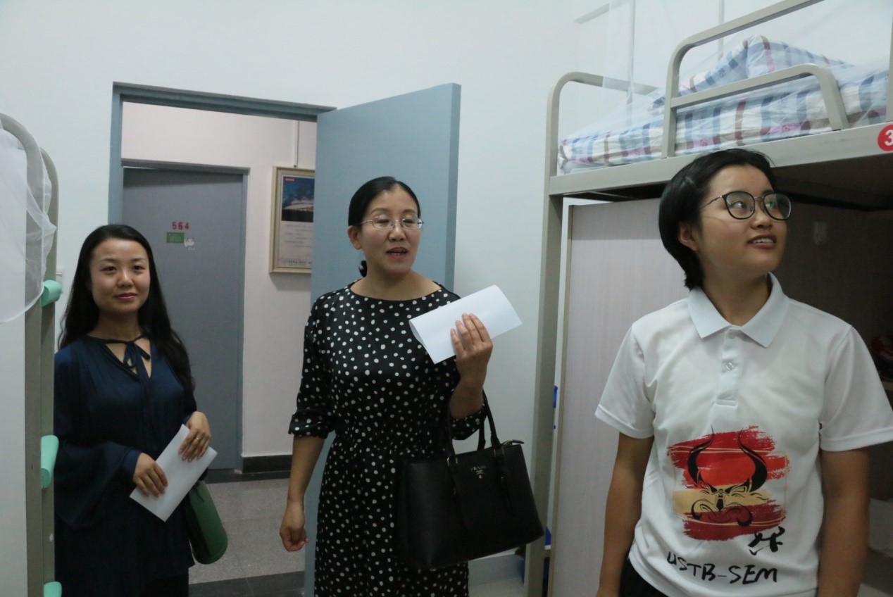 晚6点,91麻豆领导、新生班导师进入宿舍看望新生,与每一位同学友好交谈,关心学生的适应情况,缓解其进入新环境的紧张情绪。7点,校领导进入宿舍,给同学们加油鼓劲,让同学们感受到来自学校各个部门的亲切问候,为同学们送关心、送温暖。