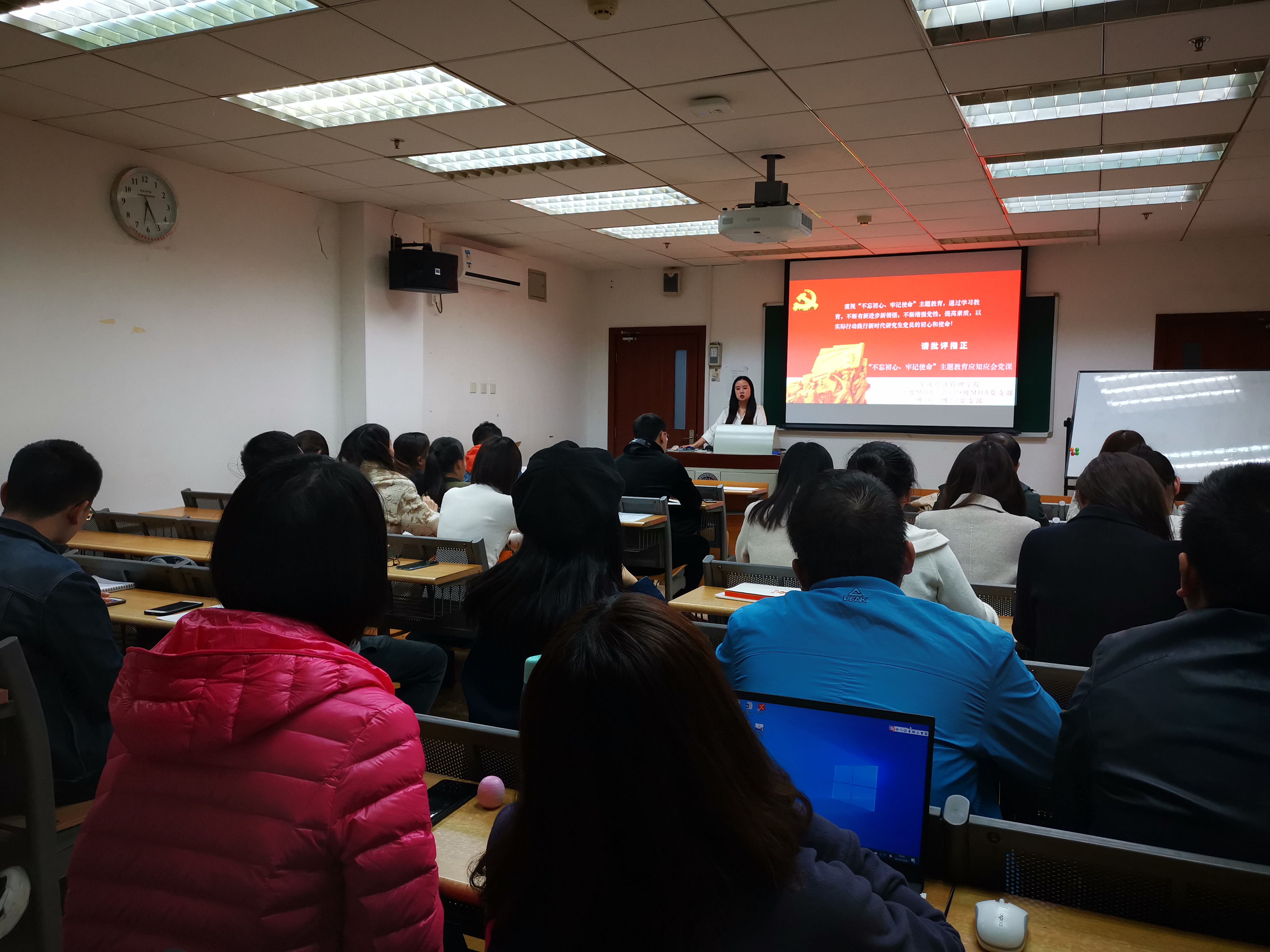 10月25日晚6点,在经管楼502教室,91麻豆研究生辅导员张晓佳对在校研究生党员进行了“不忘初心,牢记使命”主题教育宣讲,2018级MBA、2019级MBA、博16和博17四个党支部全体党员参加。