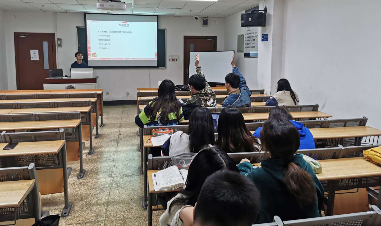 所谓“风浪里识舵手”,完成了理论知识的学习,就到了最激动人心的四史知识抢答环节。团支书负责倒计时,数到1时,举手最快的同学可以获得抢答机会,答对题目便能获得相应积分,答错不扣分。累积得分最高的同学,将获得古灵阁自修室盲盒中的礼品。最后,我们可爱的张姚睿同学斩获了盲盒,并开启了一盒金沙巧克力!