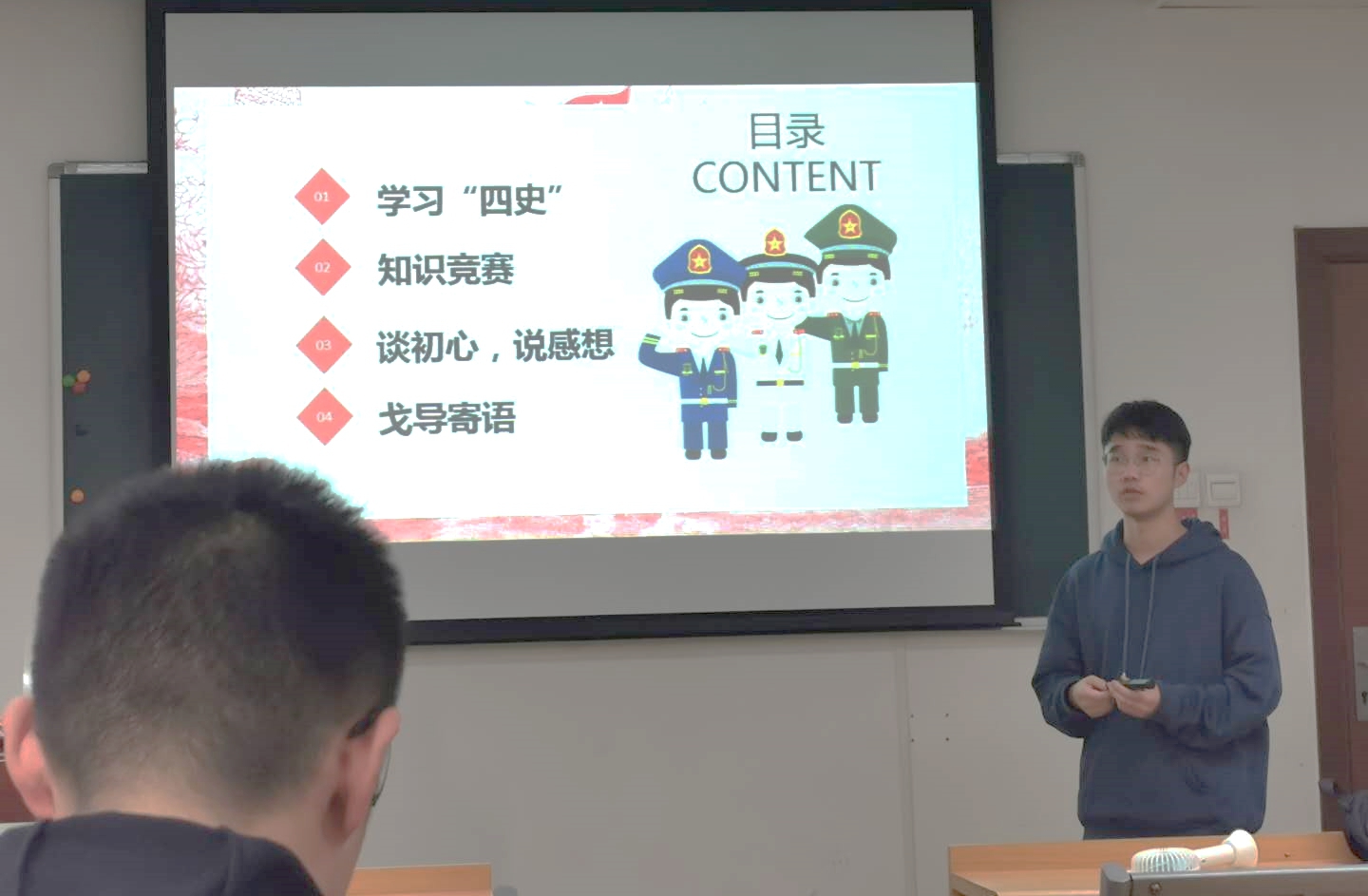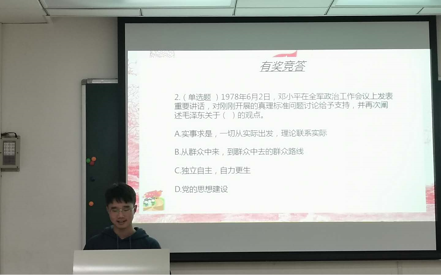 在团支书丁桂林的介绍下,我们了解到,四史——即党史、新中国史、改革开放史、社会主义发展史;习近平总书记指出,“只有坚持思想建党、理论强党,不忘初心才能更加自觉,担当使命才能更加坚定”,“要把学习贯彻党的创新理论作为思想武装的重中之重,并同学习党史、新中国史、改革开放史、社会主义发展史结合起来”。“四史”内容各有侧重,但整体讲的就是中国共产党为人民谋幸福、为民族谋复兴、为世界谋大同的实践史,中国共产党的领导是“四史”的主线。
