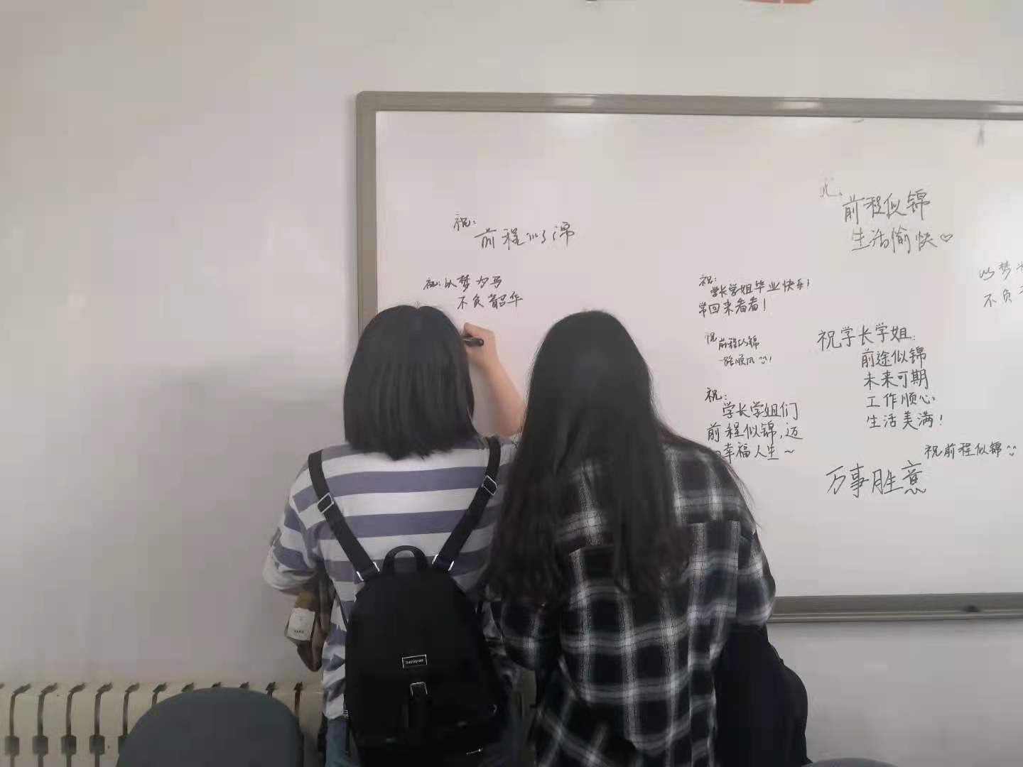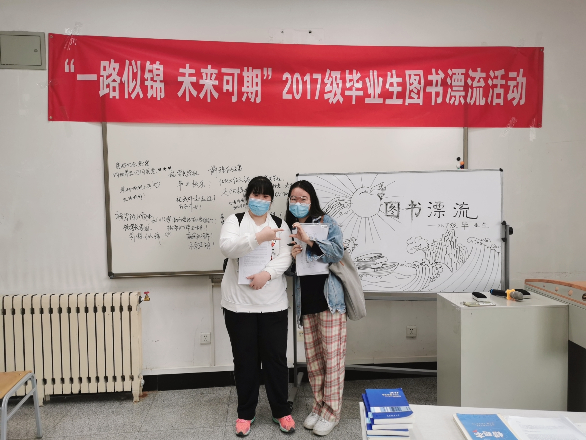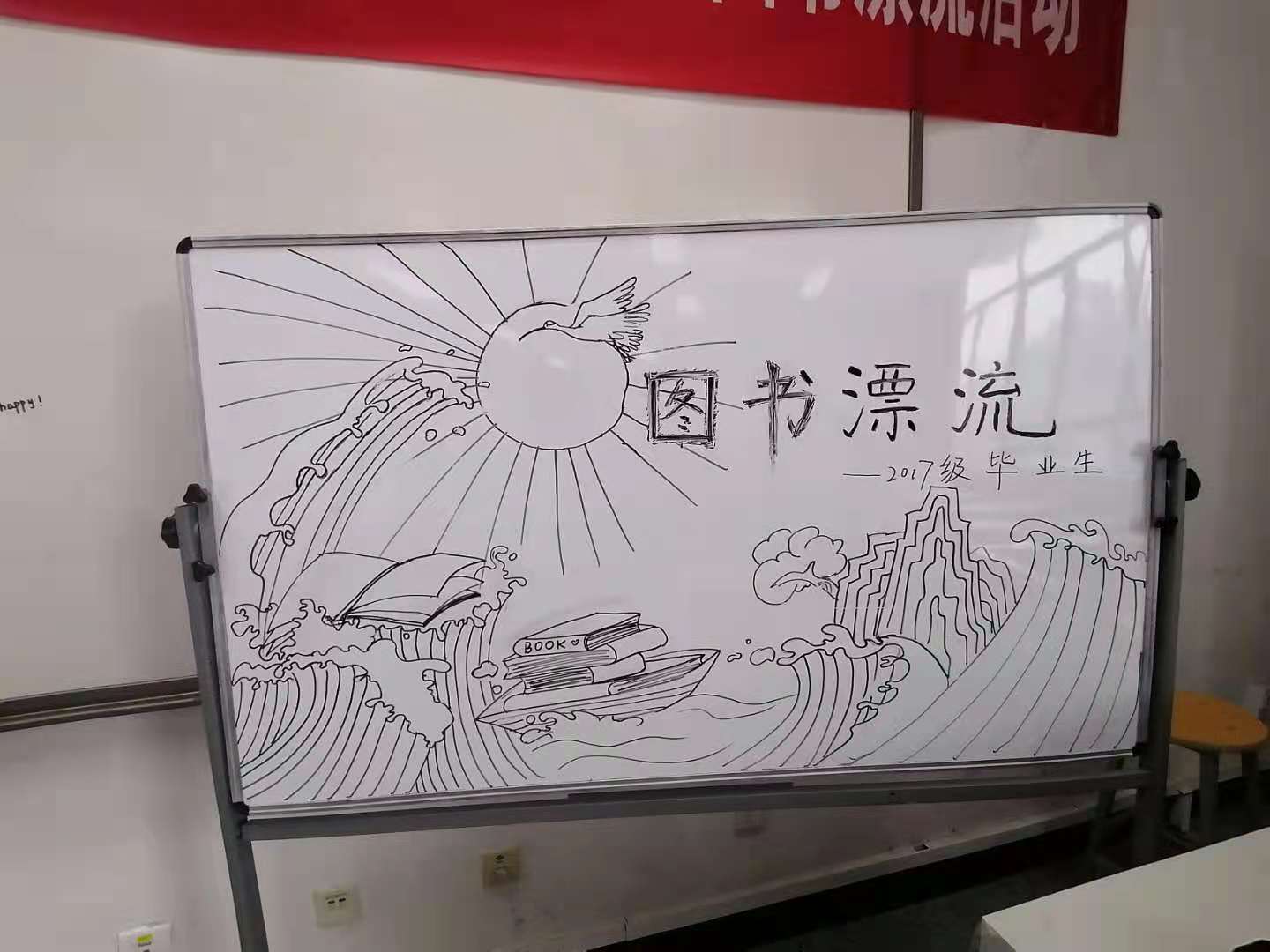 4月25日,91麻豆 于经管楼301和310成功举办了以“一路似锦,未来可期”为主题的2017级毕业生图书漂流活动。为确保活动的顺利开展,2017级毕业工作组进行了为期一周进行活动预热,即对2017级经管准毕业生提出捐书倡议,以上门回收的方式进行旧书收集。活动前夕,毕业工作组成员将已回收的书整齐的摆放在经管楼301和310,并绘制了可爱的插画。