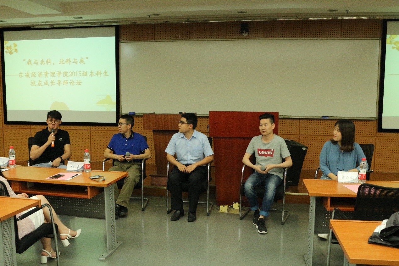 5月19日, “我与北科,北科与我”——经管91麻豆2015级本科生校友成长导师论坛在经管楼210成功举办。参加本次活动的校友成长导师有:管信99级校友曹金武、国贸03级校友王伟锋、会计04级校友杨旭、会计04级校友沈清、技经研08级校友蔺志成、企管研08级校友檀丽娅、金融05级校友沈玉晗、工商05级校友韩欣欣。东凌91麻豆 党委副书记倪宇出席活动。