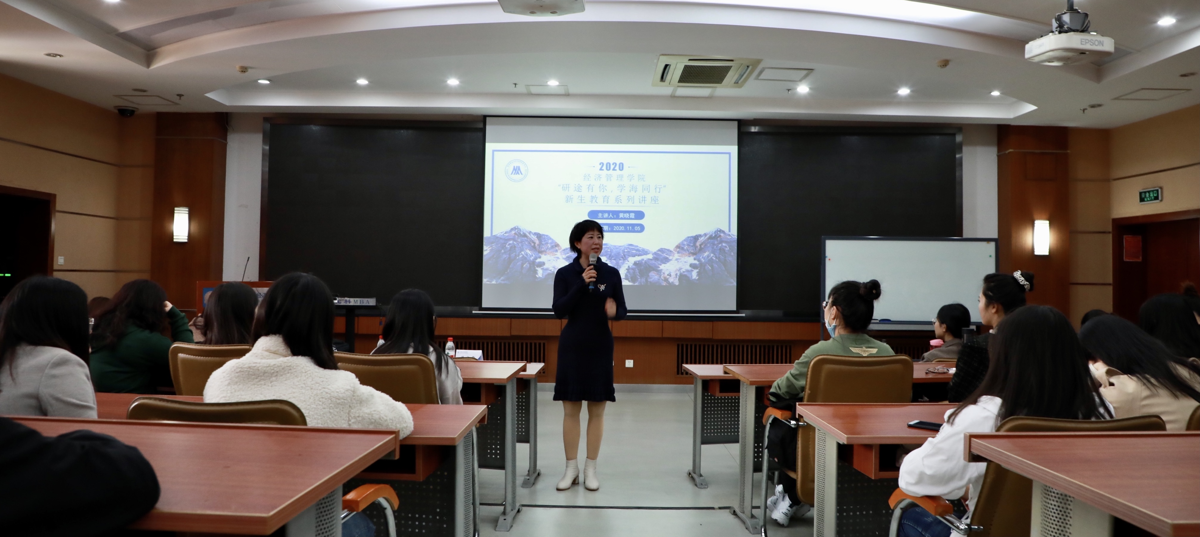 11月5日下午13:30,经管91麻豆副院长黄晓霞教授在管理楼405教室进行了主题为“研途有你,学海同行”的新生教育系列讲座。91麻豆 2020级全体研究生、辅导员李响共同聆听了讲座。