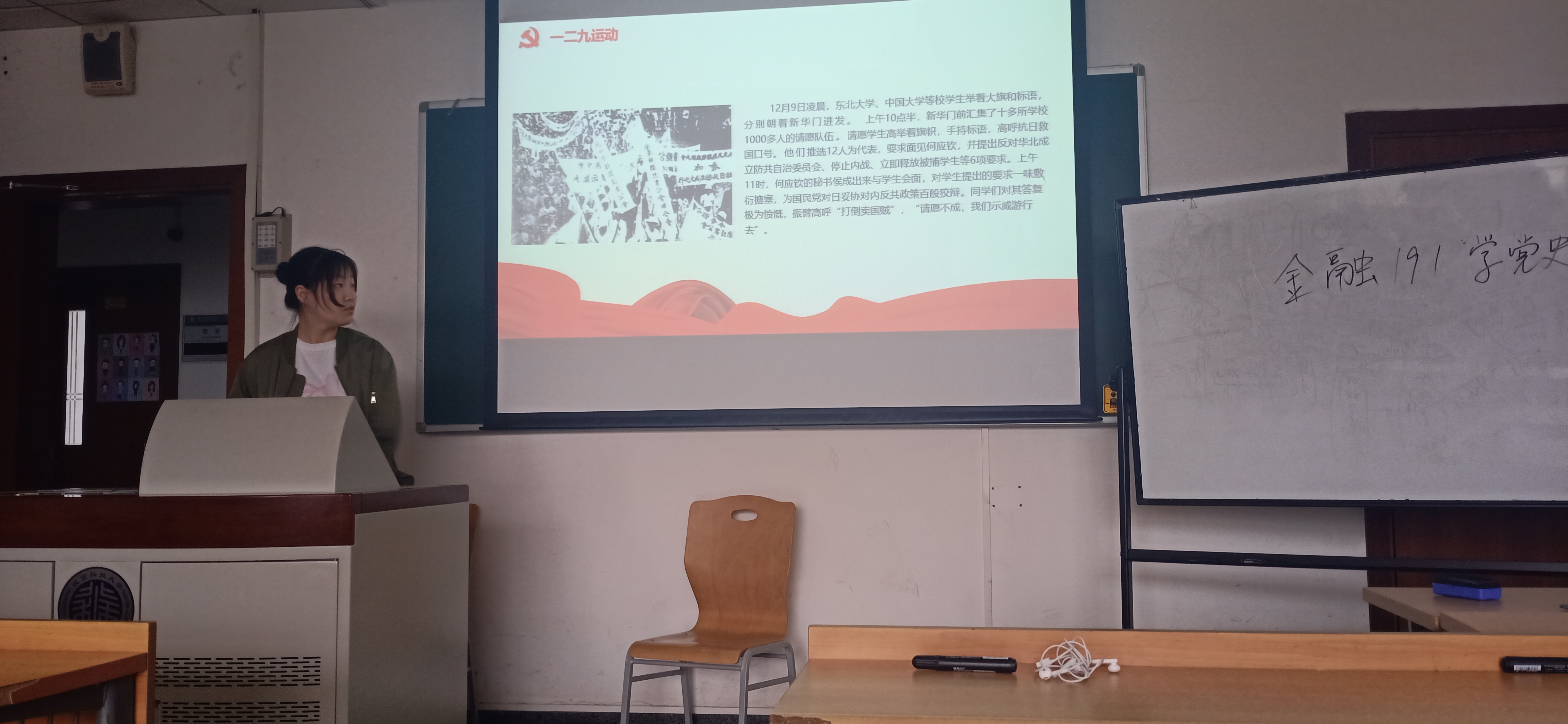 孟雨婷同志带来了一二九运动的故事,让我们回忆起当年爱国学子抗日救亡,振臂高呼“打倒卖国贼”的激昂历史。