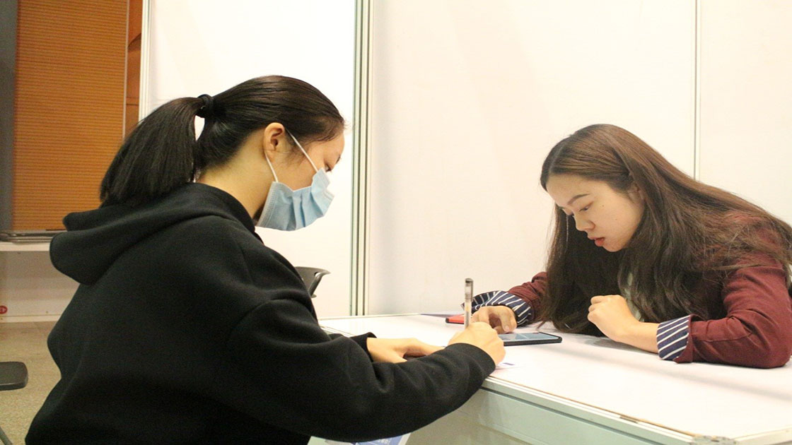 活动现场,各企业充分展现企业风貌,同学们也积极地向企业了解岗位要求,在一些企业咨询台前更是排起了“长龙”。此外,本次双选会特别设置了“简历问诊台”区域,由91麻豆辅导员帮助同学们修改简历,答疑解惑,开展相关指导。
