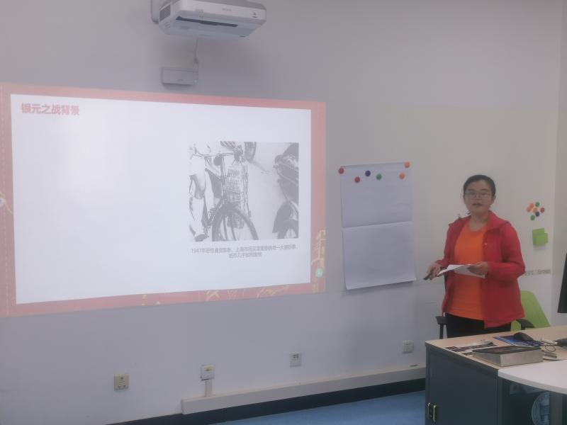 第一位分享的是本低党支部党员任霄霄同学,她讲述的主题是“三大战役的故事”,为我们介绍了银元之战、米粮之战、棉纱之战这三大战役的经济背景和历史故事,分析了以陈云同志为代表的中国共产党人面对重重经济困难采取的经济措施和政治措施,这些举措维护了人民利益,沉重打击了投机资本家,稳定了物价水平。这场斗争,巩固了新生的人民政权,提高了共产党的威望,也给了资产阶级以深刻的教育,使他们不得不相信,共产党不仅能够打天下,而且善于治天下。