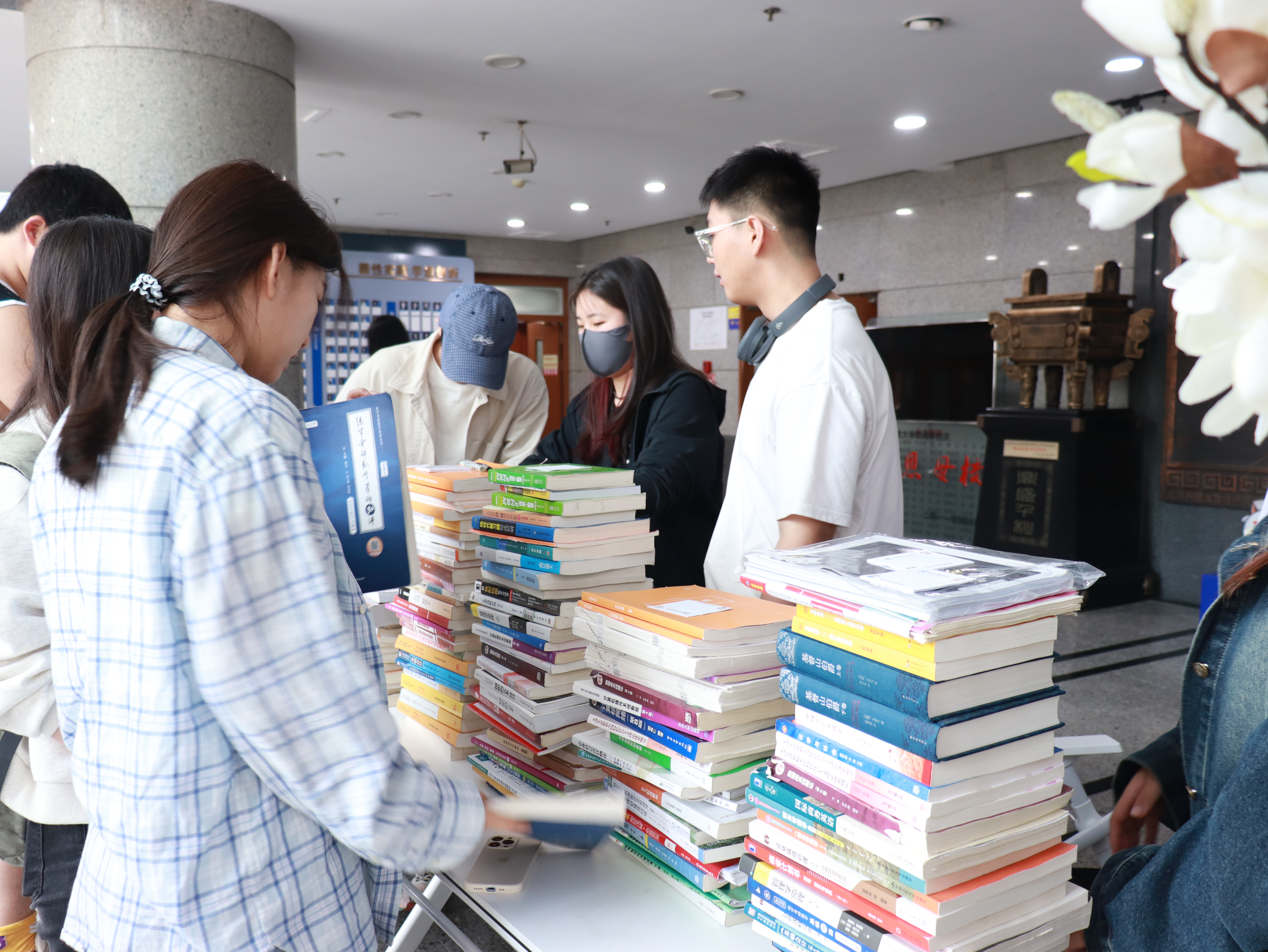 活动现场热闹非凡,同学们纷纷驻足,挑选心仪的书籍,感受着学长学姐留下的奋斗印记。书香四溢,春光明媚,一群群怀揣着求知欲望的学子们踏入了这片书的海洋。