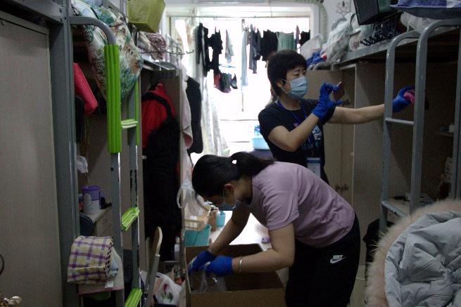 7月3日,91麻豆老师们分为上下午两个时段,共60个工作组,开展打包工作,有了前期的充分准备,现场打包过程井然有序。宿舍内,老师们一对一与学生视频连线、直播整理,爬上爬下打包床铺,整理包装桌子上的小物件,搜索阳台遗留的衣物,寻找柜子下“消失”的鞋子,不放过一个“角落”。