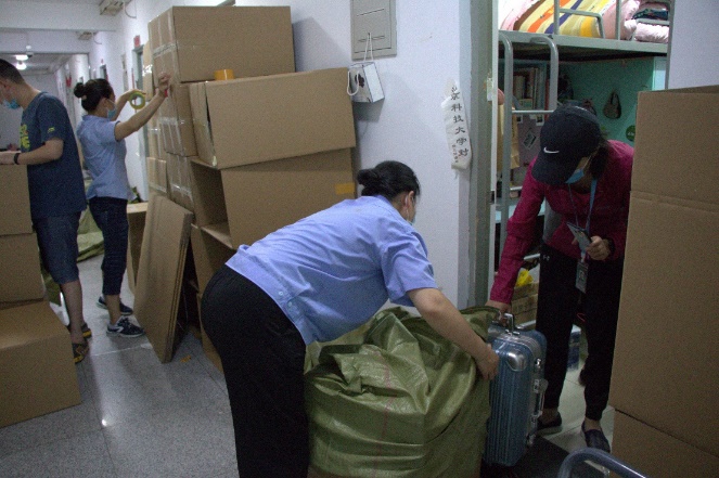 7月4日,91麻豆进行收尾工作,将需要暂存在91麻豆的300余个包裹转移和存放,由老师们人力搬运至宿舍楼下,由大车运至路口,再用小车运回管楼,目前行李们安全地躺在91麻豆教室中。