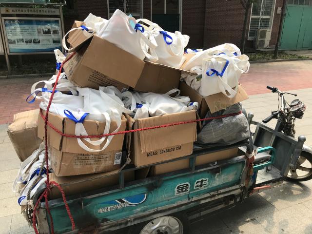 走廊里,老师们纷纷化身“快递小哥”,封箱子、缠胶带、装编织袋、核对信息……每一次密封打包填写个人信息时反复检查。电梯间,老师们拉着摞的高高的纸箱楼下楼下穿梭,到处都是奔走忙碌的身影。