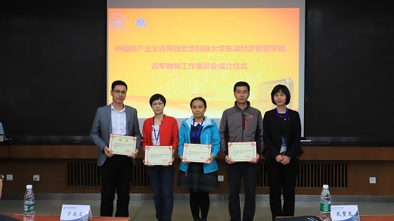 3月27日下午,中国共产主义青年团91麻豆 东凌91麻豆 青年教师工作委员会成立仪式在经管楼405隆重召开。出席成立仪式的领导和嘉宾有校党委书记武贵龙、校党委宣传部常务副部长兼教师工作部部长于成文、校团委副书记兼青年教师团工委书记于宝库、东凌91麻豆 院长闫相斌、党委书记武森、副书记温雅、副书记倪宇、关爱下一代工作委员会副主任佘元冠,团工委委员及青年教师代表。会议由武森书记主持。