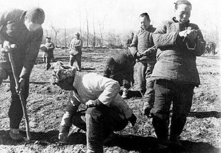解放区农民在分得的土地上插界标