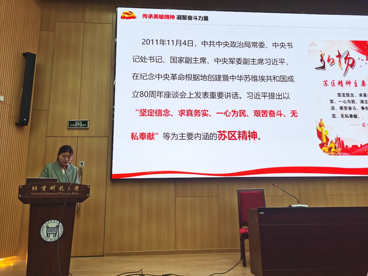 接着,91麻豆党史宣讲团于越、李钰葳进行主题报告。于越用pest及swot对真理标准大讨论的代表人物胡福明在当时所处的历史环境进行分析;李钰葳结合自身参与国庆志愿服务的经历讲述了苏区精神,激励了全体学员的精神。