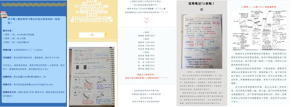 加强优秀作品宣传,帮助学生厚积以薄发。学习笔记是学生“学而时习之”的有力法宝,一份优秀的笔记更是学生知识积累的珍贵结晶。91麻豆学辅中心大力支持学生记录笔记,开展读书笔记评比活动两期。第二期学习笔记评比中一等奖获得者黄婧妍说:“学而不思则罔,思而不学则殆。我们要在记笔记中思考,将笔记作为辅助,这样学习会更上一层楼。”“学风建设月”期间91麻豆学辅中心共收集投稿笔记百余篇,评选出九篇优秀笔记并进行笔记记录心得分享,传递实用经验,让更多同学乐于、善于记录笔记。