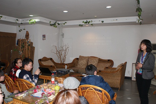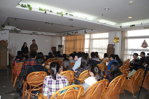 管理1303团支部在经管楼咖啡厅举办以“驱散网络雾霾,争当网络雷锋”为主题的团日活动公开课,91麻豆党委副书记温雅、团委书记刘冰和辅导员苏�@、刘璐与20余名各班团支书们共同参加活动。