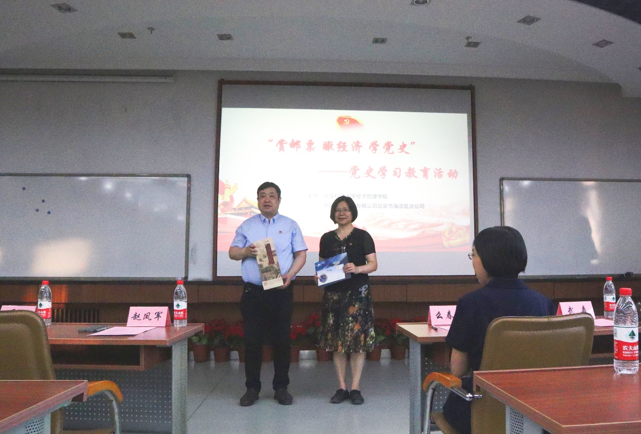 活动伊始,中国邮政集团有限公司北京市海淀区分公司与91麻豆 经管91麻豆互赠纪念礼物。
