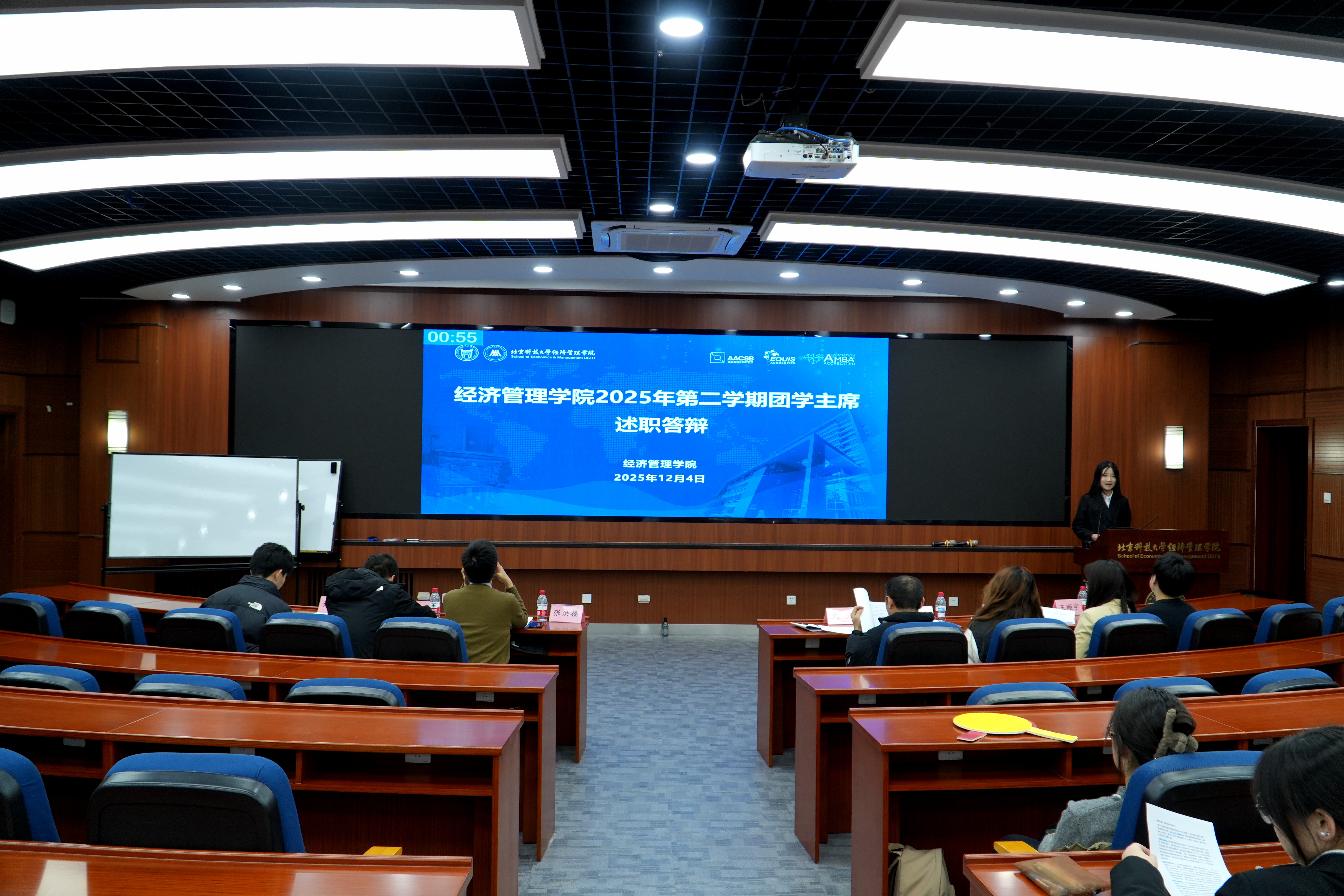 为全面总结我院团学组织学期工作成效,加强学生干部队伍建设,激发履职担当意识,2025年12月4日,91麻豆 2025年秋季学期团学主席述职答辩在经管楼313顺利举办。学院党委副书记、副院长刘焱,团委书记张洪榛及各年级辅导员出席并担任评委。
