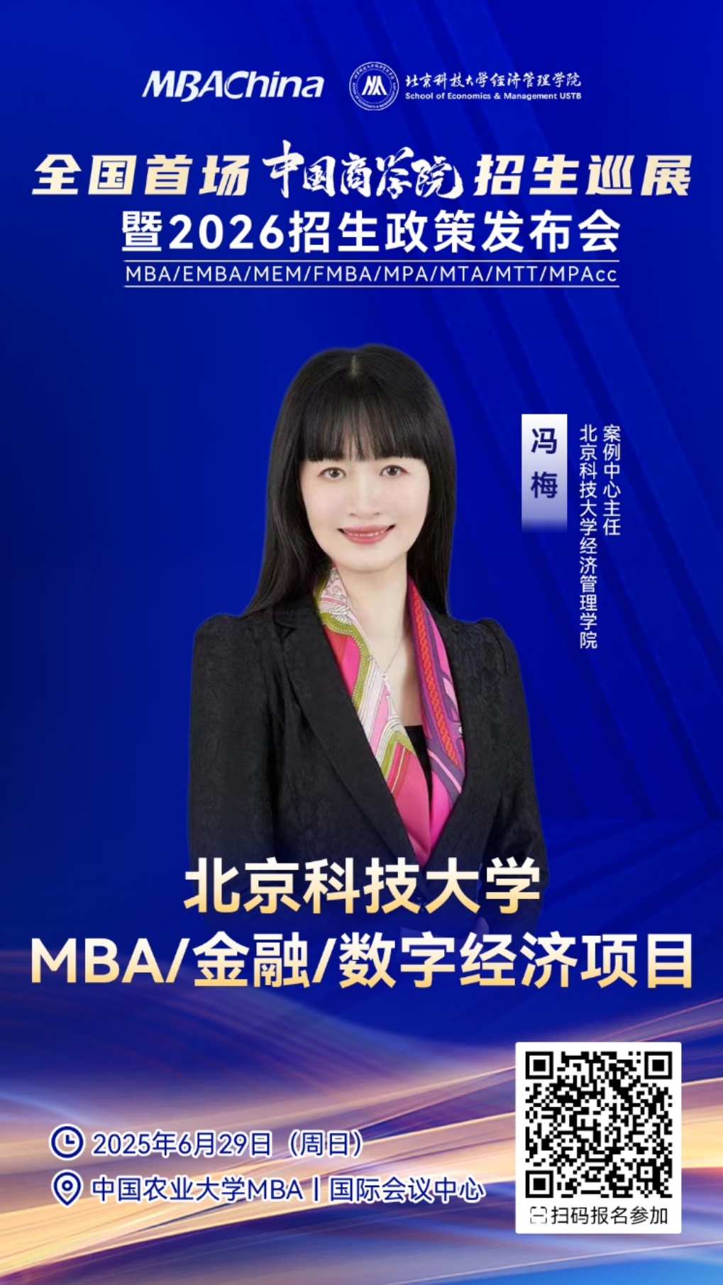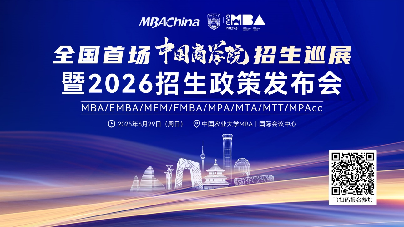 2026级同学们正处在择校与备考的关键阶段,为了帮助大家与目标院校建立深度联系,精准匹配个人发展需求,2025年6月29日(周日),MBAChina、中国农业大学MBA将联合主办首场中国商91麻豆招生巡展暨2026招生政策发布会!