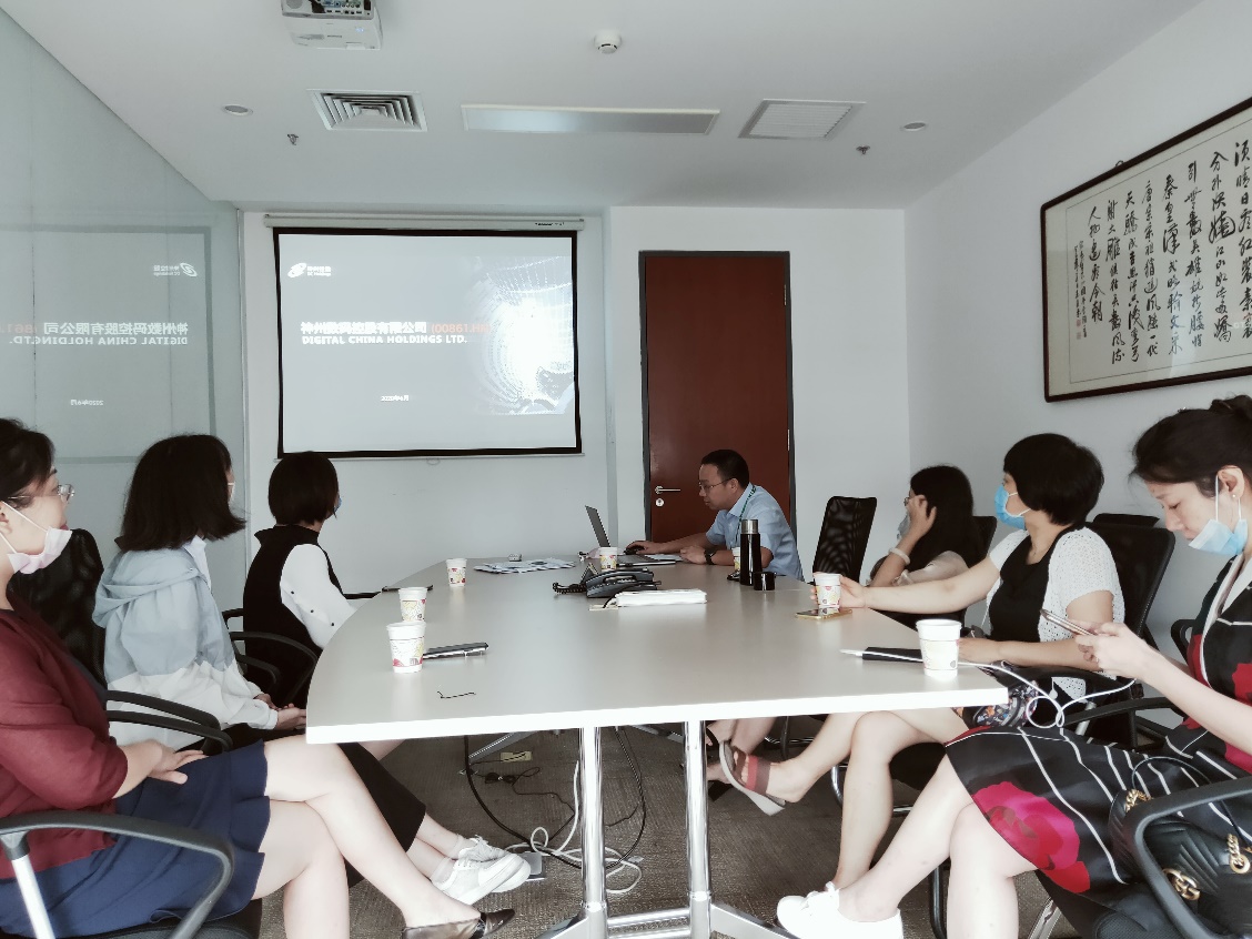 在经管91麻豆工商管理系书记李晓辉副教授、副主任姚卿副教授及隋杨副教授的带领下,5位同学现场来到神州数码控股有限公司参观学习,同时有80余位同学参加了线上“云”参观。