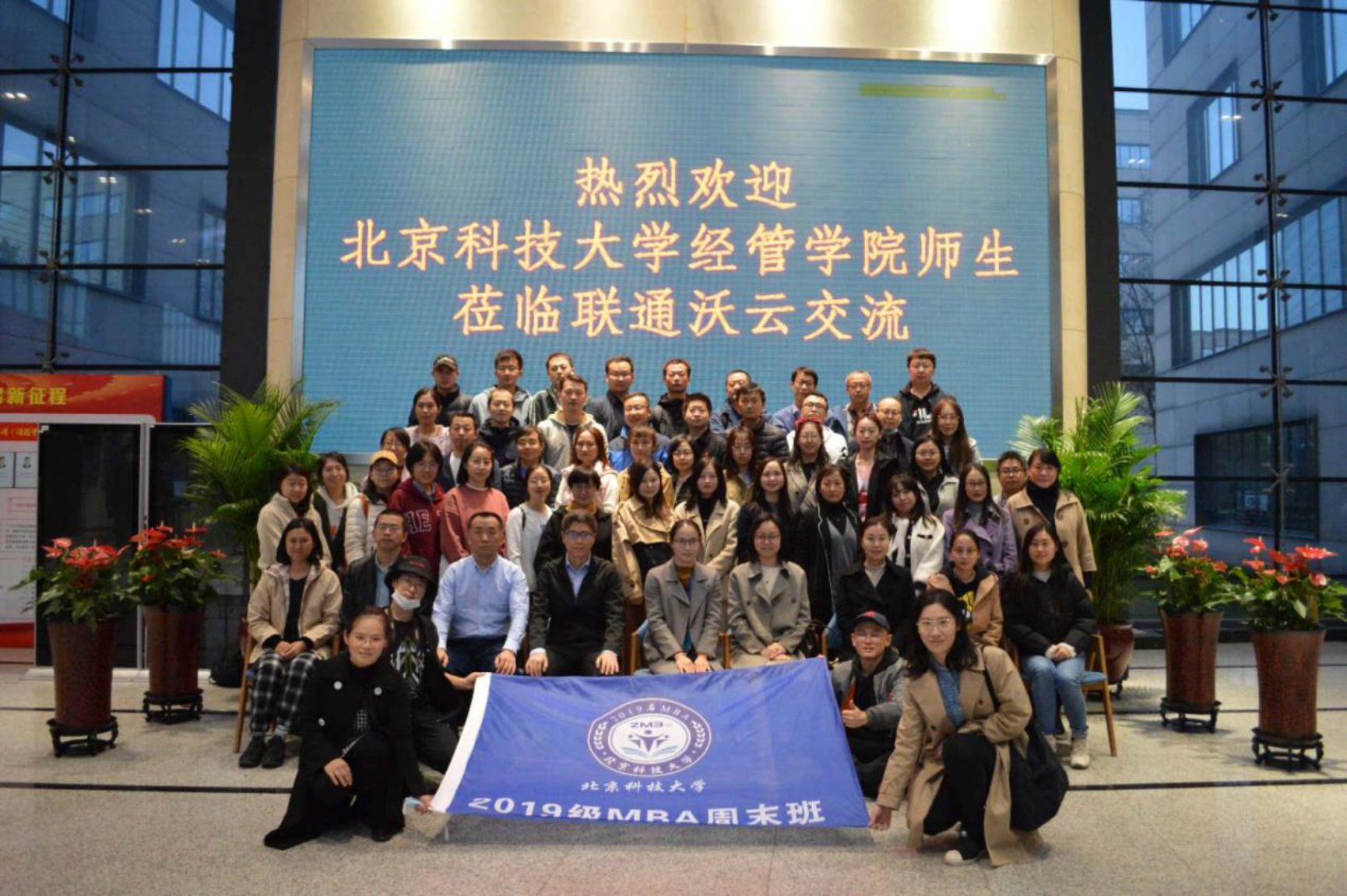 2020年11月7日下午,在工商管理系姚卿副教授、林敏副教授、工程管理与技术经济系王震勤副教授的带领下,北科大2019级MBA周末班同学们走进中国联通云数据有限公司,进行参观学习。