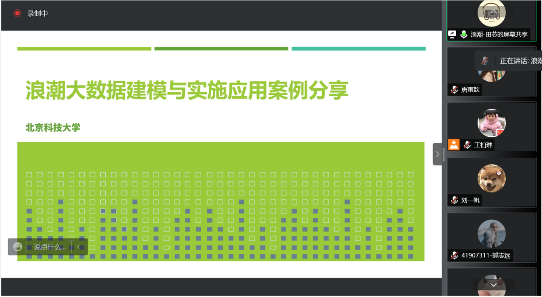 管理科学与工程系采用腾讯会议的方式举办了信管与大数据系列讲座第三讲——“大数据建模与实施应用”讲座。本次讲座邀请浪潮集团教育事业部方案专家田芯老师主讲,管理科学与工程系教师及对大数据建模感兴趣的本硕博同学参加了本次讲座的学习。王柏琳副教授主持了这次讲座。