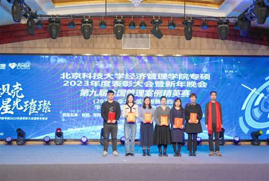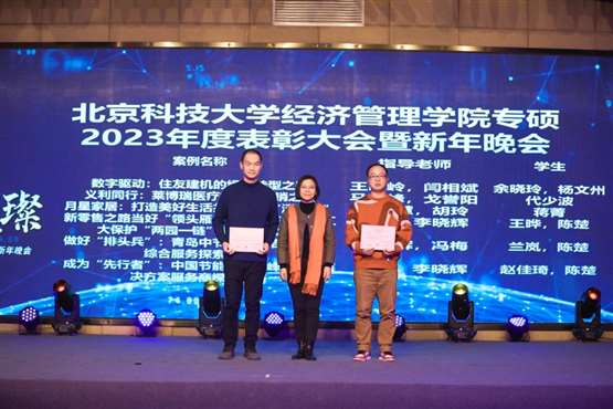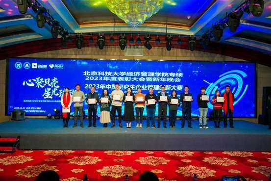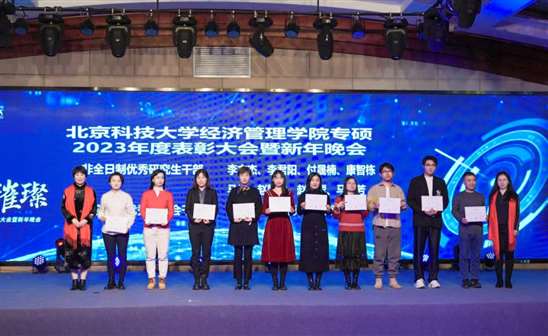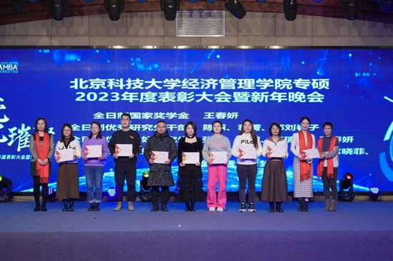 晚会现场,为过去一年学校取得的各项荣誉以及22级各位优秀学生进行了表彰。2023年同学们在各种团体竞赛中取得佳绩:九篇MBA管理案例收录至中国管理案例共享中心案例库,其中三篇荣获“百优案例”;在第十四届、十五届“尖烽时刻”全国模拟大赛总决赛中,荣获MBA/研究生组全国二等奖、最佳上镜奖、尖烽海报奖;第九届全国管理案例精英赛(2023)华北一区晋级赛取得了第四名和第五名的好成绩,并获得了全场“最有价值队员奖”;在第四届思政案例大赛中有三支队伍脱颖而出;首次参加的2023年中国研究生企业管理创新大赛同学取得二等奖和三等奖的成绩。此外,同学们还积极参与沙12挑战赛、北京MBA篮球超级联赛,第五届中国MBA羽毛球联赛、第四届亚太区商91麻豆龙象海越野挑战赛等赛事,均取得优异成绩。一项项骄人的成绩不绝于耳、心潮澎湃;国家奖学金、优秀研究生干部、三好研究生、优秀联合会干部,一位位优秀个人神采飞扬、精神可嘉。丰硕的成果离不开全院老师和同学的共同努力,是他们以奉献铸就卓越,以勤奋诠释追求,以团结描绘梦想,用实际行动为北科大MBA争得荣誉、谱写北科MBA辉煌篇章!