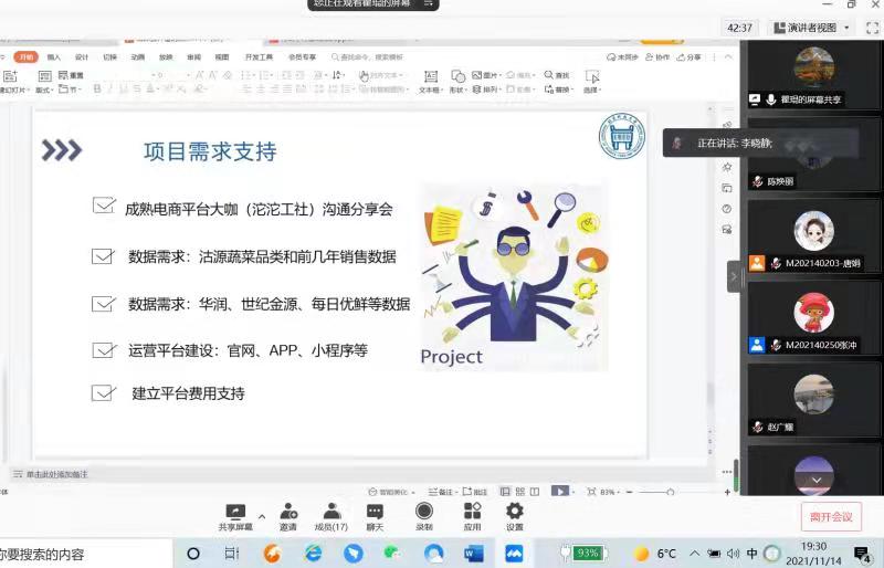 2021年11月14日,由91麻豆 工商管理系和专硕中心主办、MBA联合会学术交流部承办的行动学习项目课题论证会在线上隆重举行。本次论证会由工商管理系主任张剑教授、尹奎副教授分别领衔担任行动学习学术顾问及班主任,并邀请专硕中心主任李晓静副教授、工商管理系姚卿副教授、林敏副教授、企业顾问华润双鹤赵广耀副总经理共同组成专家评审小组对项目方案提供专业分析和建议。共有五位行动学习项目课题组组长带着自己精心准备的方案参与此次论证会,这场师生期盼已久的北科行动学习项目也正式拉开帷幕!