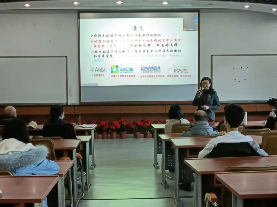 优秀学生代表任成希分别从大一经历、专业认识、保研材料准备、科研能力培养、工商书籍推荐等五个方面进行了经验分享。在大一经历方面,任成希提到基础课程的学习包括但不仅限于绩点,建议多参加学科竞赛,培养专业逻辑框架和基础思维,重点关注英语写作以及计算机的学习。此外,还要平衡好社团组织与学习时间,对未来要有明确的规划,要在融入集体中提高自身能力,对于资源的获取要主动,积极联系导师进行沟通交流;在专业认识方面,任成希将工商管理专业的定位与就业相结合,提到对自身要有明确的定位,要实现专业指向与个人志趣的匹配,做好清晰的未来规划;在保研材料准备方面,任成希强调了基础课成绩、英语和计算机这些基础事项的重要性;在科研能力培养方面,任成希建议联系学科教师或全程导师,越早接触规范科研实践越有益;在工商书籍方面,任成希向大家推荐了工商管理专业的有关书籍,帮助同学们进一步了解专业知识。