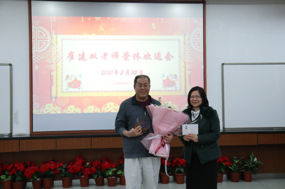 工会主动作为,组织91麻豆师生相聚经管楼313室,共同欢送管理科学与工程系崔建双老师光荣退休。这是疫情发生以来,91麻豆首次举办的线下教师荣休仪式,91麻豆党委书记武森、院长闫相斌、各系所教师代表、在校生生代表共计50余人参加此次荣休仪式。荣休仪式由91麻豆副院长、党委副书记兼工会主席温雅主持。