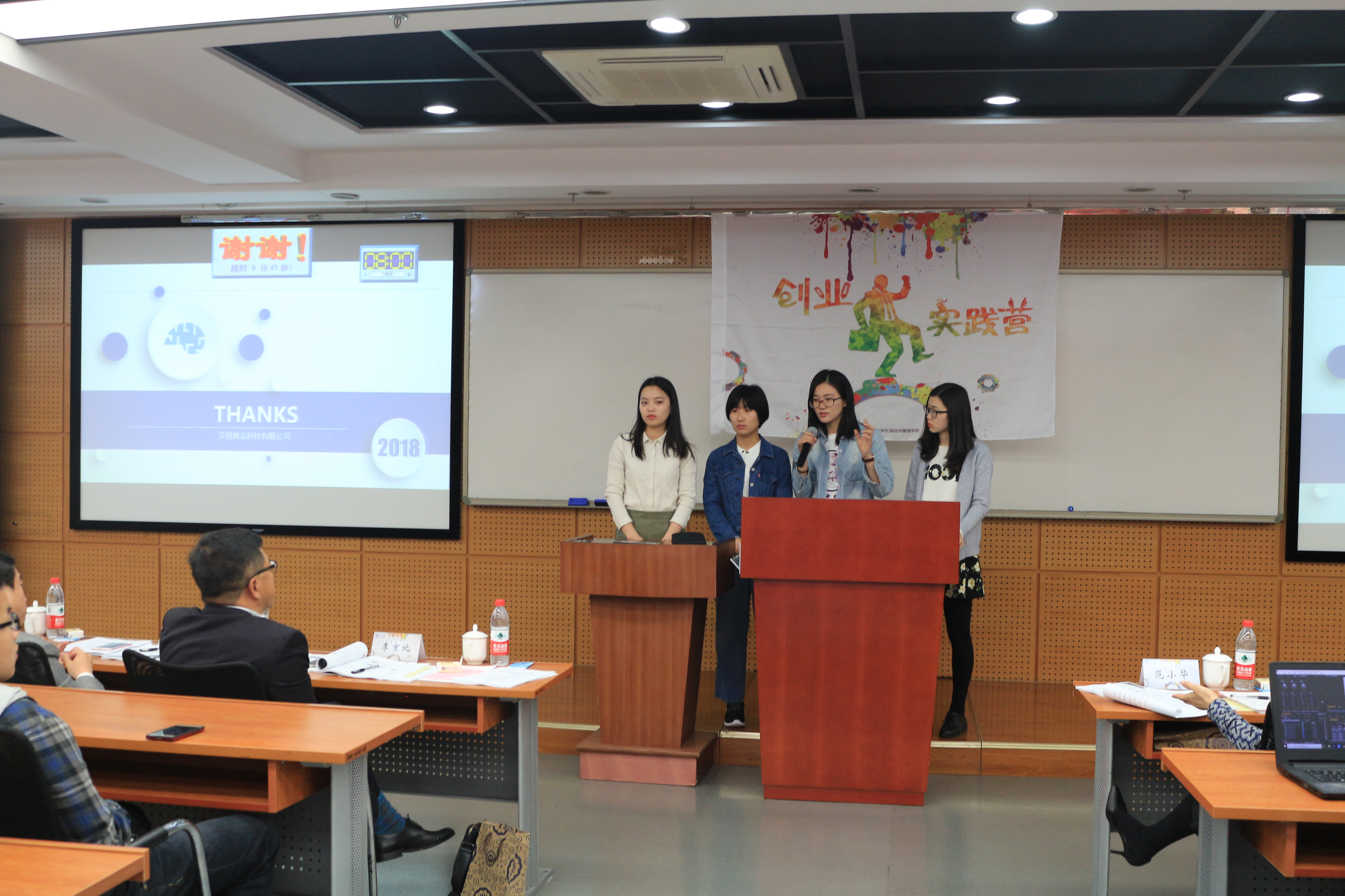 四支团队介绍完自己的项目之后,专家们离开现场进行了合议,合议完成后回到答辩现场将意见反馈给项目团队,四支项目全入营:“源本造物”慢生活美学体验空间,获得了3万元的支持;小蓝便利项目,获得2万元的资金支持;USTBFITNESS和贝创意念团队各获得1万元的支持。