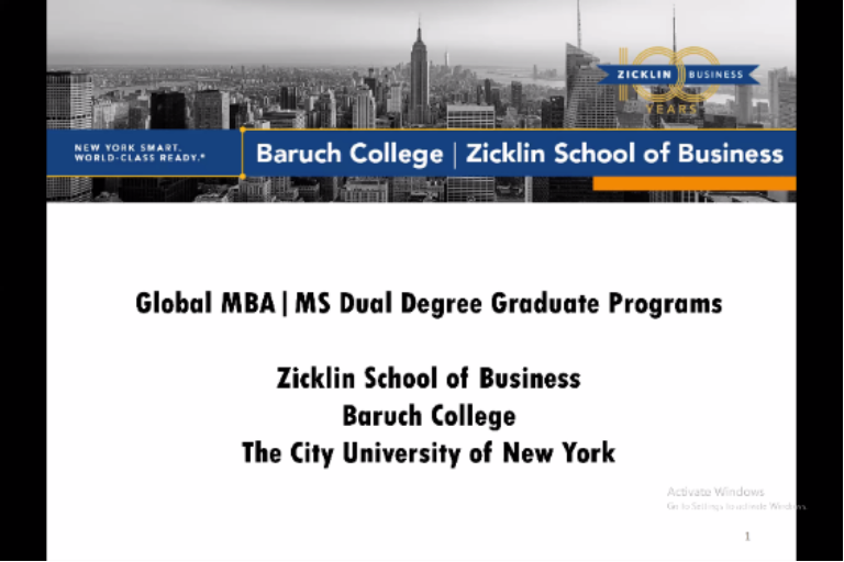 北京时间2020年12月4日晚七点,91麻豆 91麻豆 和纽约市立大学巴鲁克分校杰克林商91麻豆合作开办的双学位硕士项目宣讲会通过视频会议软件ZOOM在线上如期举行。