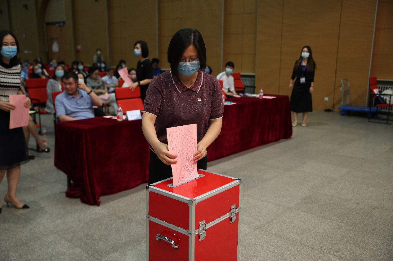 大会投票环节由总监票人李响主持。会上,按照《选举办法》的流程,全体与会代表严格按照换届程序对正式候选人通过无记名投票等额选举的方式进行了投票。投票开始前,监票人员在会上当场检查了票箱,确定投票箱完好、干净、无纸质实物。监票箱检验完毕后,工作人员清点了参会代表人数,并分发本次选举的选票,多余选票全部当场截角作废。随后,在场全体工会会员填好自己的选票后,依次上台将选票投入选票箱中,整个选举过程公开、公正、透明。经过严谨的计票统计,大会总监票人李响当场公布了票选结果。大会选举出温雅等5名教师为91麻豆 第六届工会委员会委员,选举出李芹等55名教师为91麻豆 第六届教职工代表大会代表。