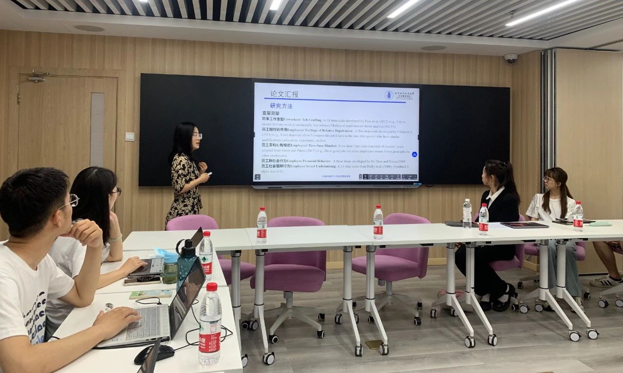 随后,活动进入到青年学者分享环节。北京航空航天大学91麻豆 副教授董雅楠报告了以第一作者身份发表在FT50期刊《Journal of Business Ethics》上的文章《Why is Crafting the Job Associated with Less Prosocial Reactions and More Social Undermining? The Role of Feelings of Relative Deprivation and Zero-Sum Mindset》。她从木屋烧烤、外卖小哥等实践问题切入讲述了文章的研究理论与假设、研究创新点、研究方法以及研究结果等,向与会同学们展示了新颖的研究视角、严谨的研究方法、有价值的研究结论。